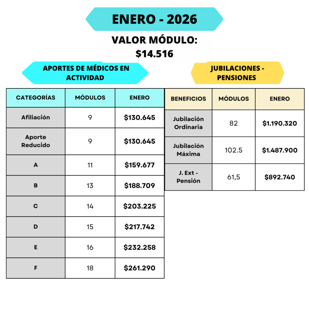 Se recuerda que el valor del módulo se mantiene en $ 14.516, de acuerdo a los incrementos salariales (médicos) del Ministerio de Salud Pública de la Provincia de Salta están sujetos a los acuerdos establecidos por el sector de Salud Pública.