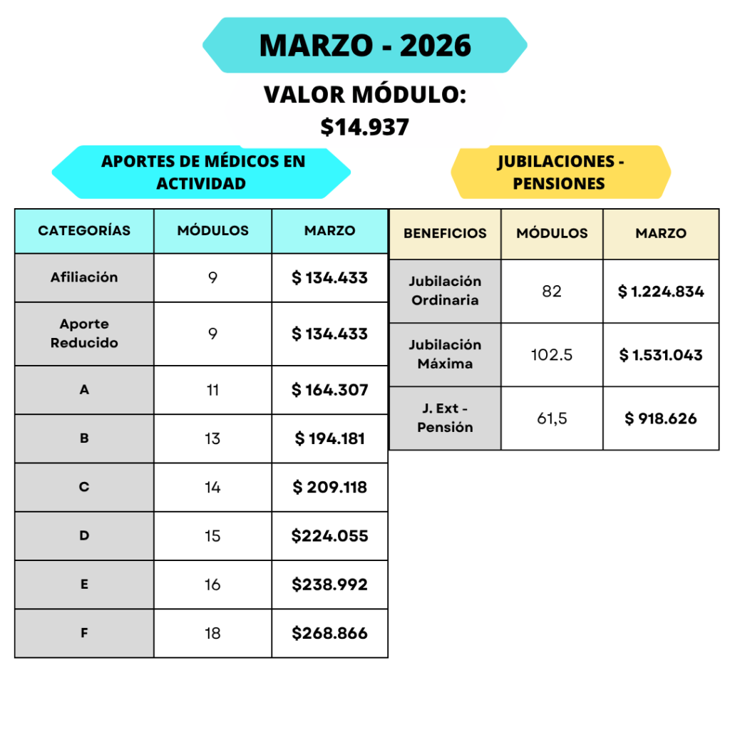 Se recuerda que el valor del módulo se mantiene en $ 14.937, de acuerdo a los incrementos salariales (médicos) del Ministerio de Salud Pública de la Provincia de Salta están sujetos a los acuerdos establecidos por el sector de Salud Pública.